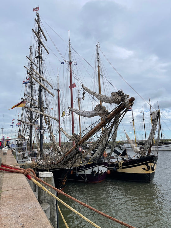 Daarna nog even naar de Tall ship Race in Harlingen geweest. Daar liep ik dan als een alien op blote voeten (op fietsschoenen is het zo moeilijk lopen) met mijn Bolsas rugzak en mijn nieuwe handgemaakte PTT shopper bag. Deze tas is het beste van twee werelden, een vintage postzak gecombineerd met rundleer met een croco print voor een hele persoonlijke touch. De handvaten daar ben ik ook heel trots op, die zijn gemaakt met “hand stitching”. Dit is een techniek met twee naalden. Elke steek heb ik met de hand genaaid. Daarna wordt het leer bijgeschuurd tot aan de stikrand, op een bandschuurmachine. Dan moeten de ruwe randen bijgekleurd zodat ze matchen met de kleur van het leren handvat.