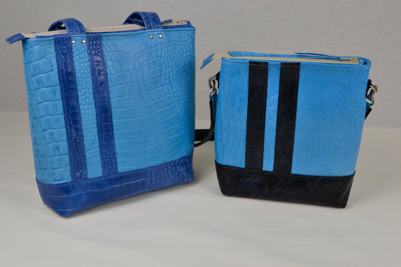 - Binnentas gevoerd met blauw gestreepte gobelin