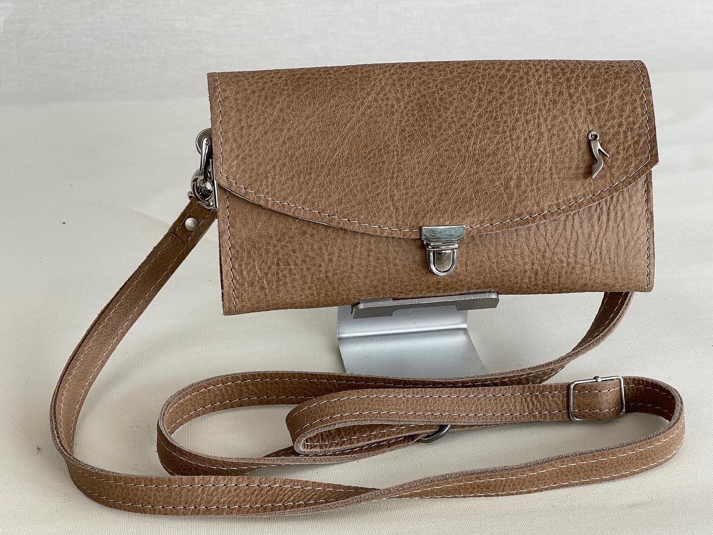 Ideaal lichtbruin handtasje voor sleutels en telefoon en kleingeld (geen apart vakje voor pasjes).