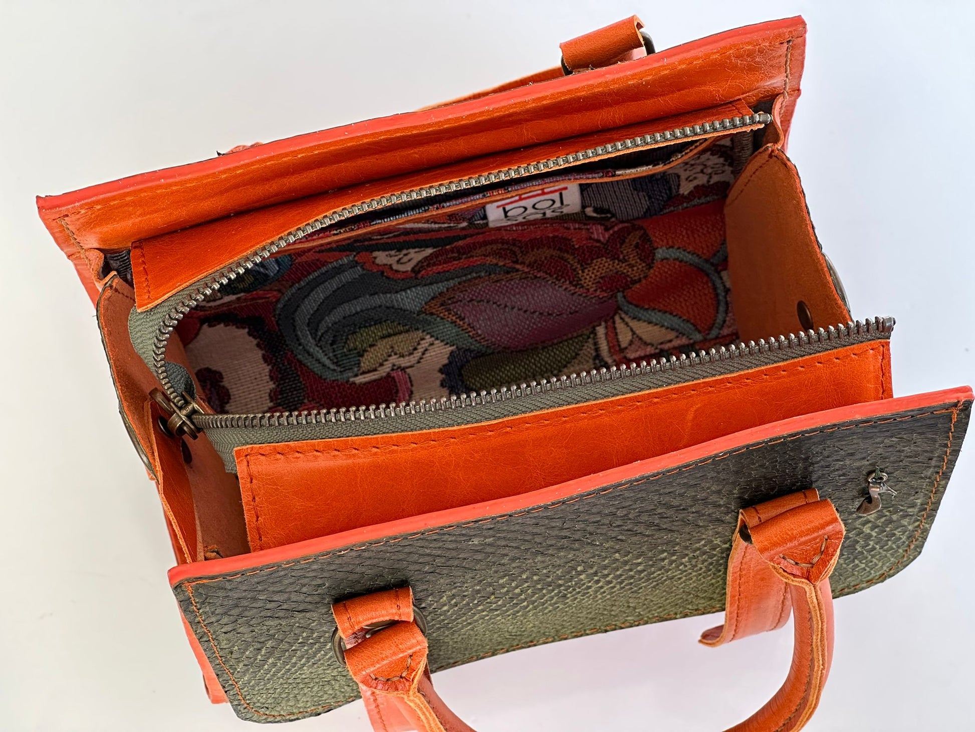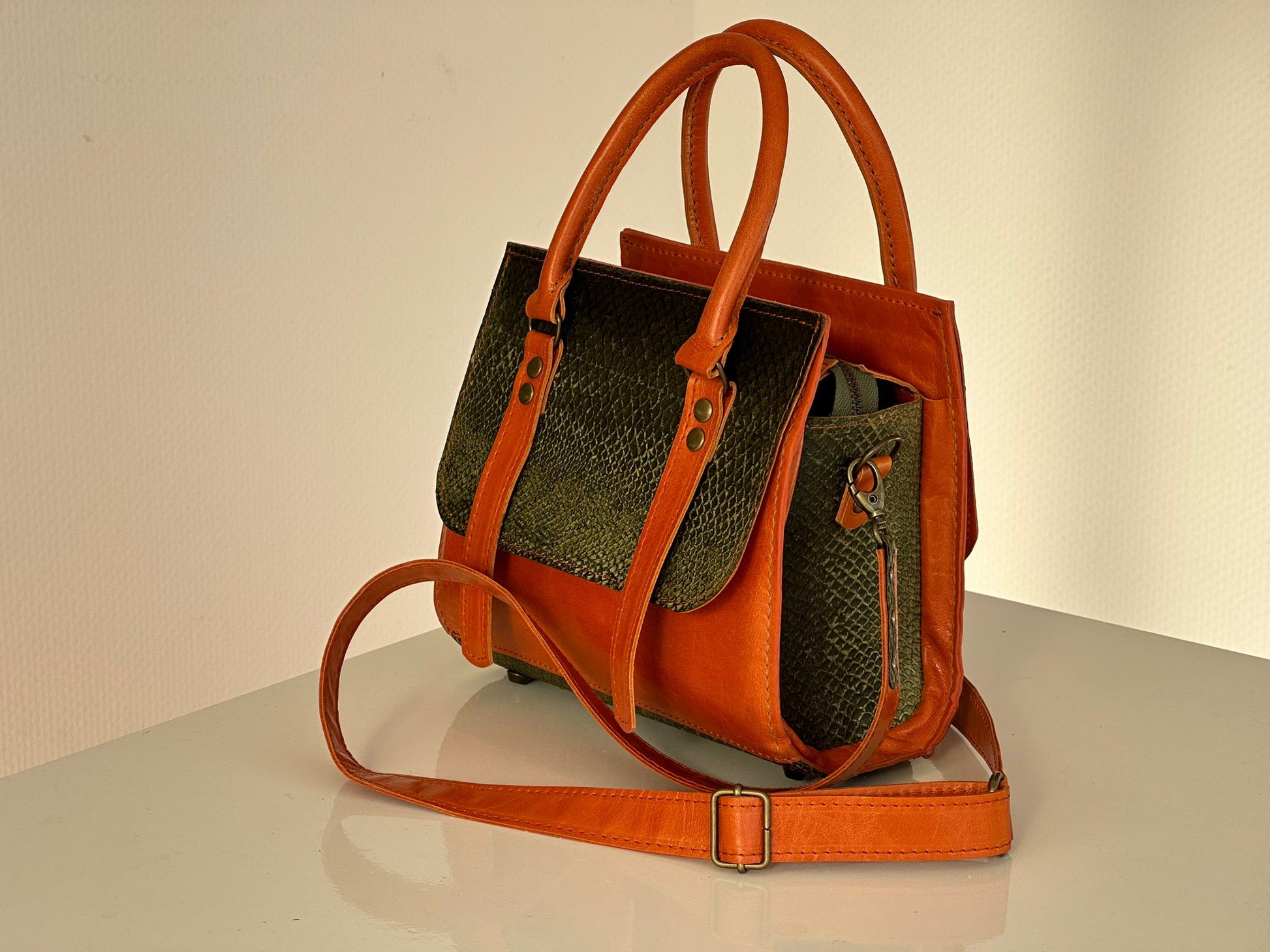 Bolsas brengt een explosie van kleur met een combinatie van levendig groen en fel oranje. De contrasterende kleuren vormen een perfecte harmonie en voegen een speels karakter toe aan de tas. De kleuren zijn levendig en langdurig, bedoeld om zelfs de meest alledaagse outfit op te vrolijken.