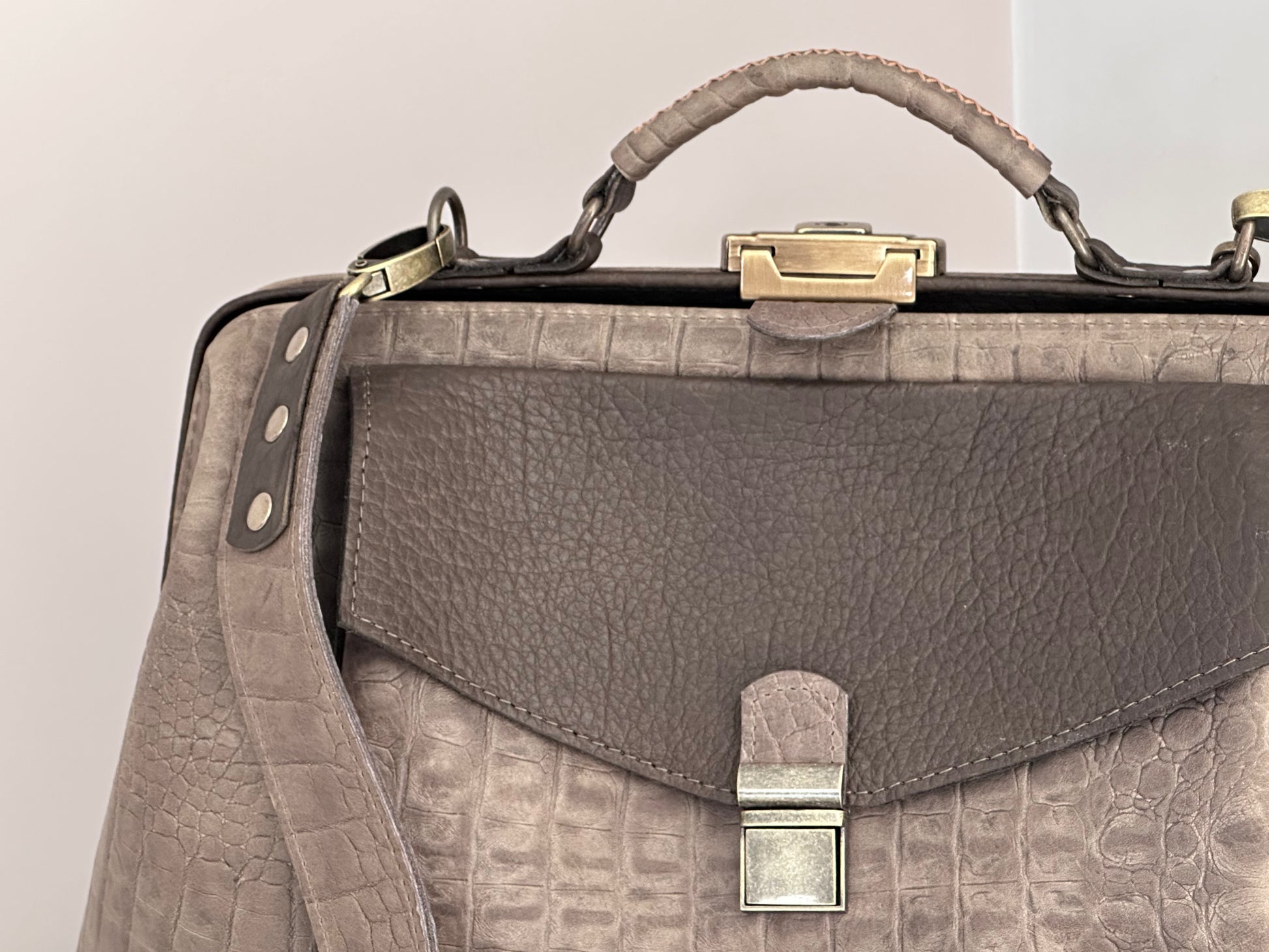 Klassieke doctor bag met strakke lijnen en rustige kleurstelling.